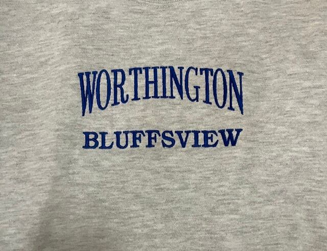 胸にWORTHINGTON BLUFFSVIEWの刺繍で入っています。