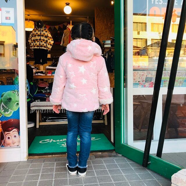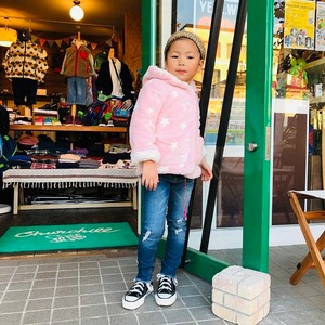 C&C California リバーシブルフリースジャケットになります。星柄が可愛くとってもフワフワのジャケットで着心地も抜群です。袖を折り返して着ても可愛いです。