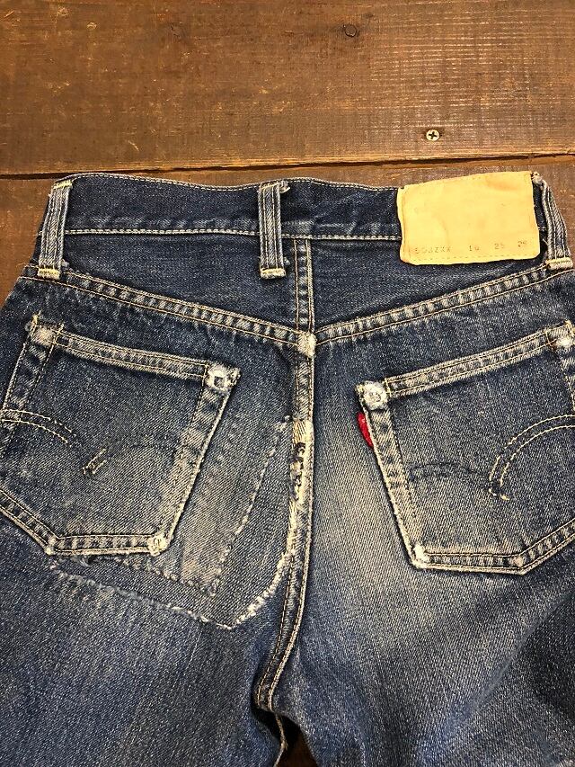 状態-デニム特有のあたり、擦れ、汚れはございます左足膝部分とヒップ部分にダメージが御座います。赤タブの LEVI'Sの文字は消えていますのでご了承下さい。