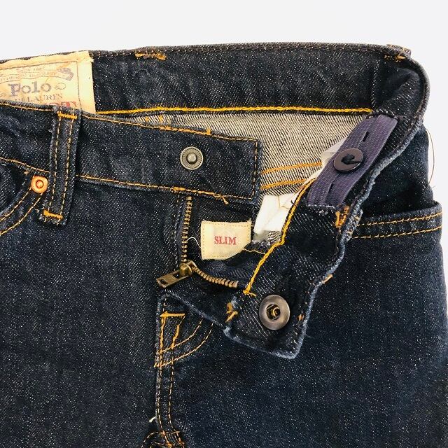 RALPH LAURENのワンウォッシュ、スリムフィットデニムになります。きれいめにもカジュアルにも幅広く使えるデニムパンツになります。ストレッチ素材が入っているので少々の伸び縮みはいたしますし、ウエスト部分両サイドにゴムも入っているので調節可能です。アメリカの正規ルートより仕入れた並行輸入商品です。