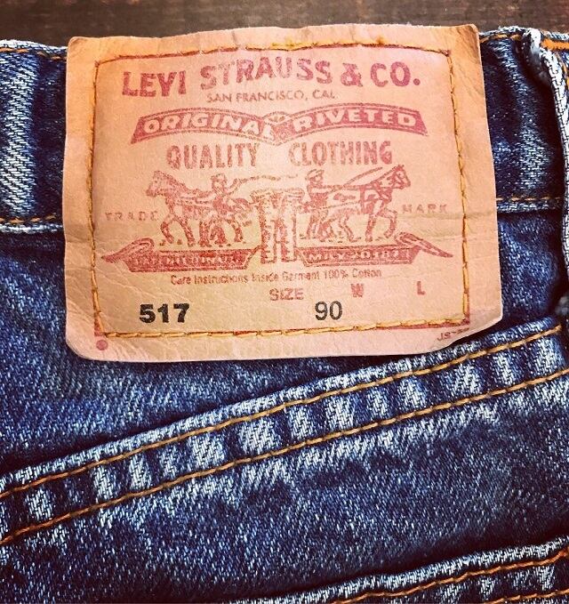 リーバイス517になります。ウエスト部に調整ゴムも付いていますのでベルトをしなくても履いて頂けます。状態も良く色も残っていて良い感じです。
