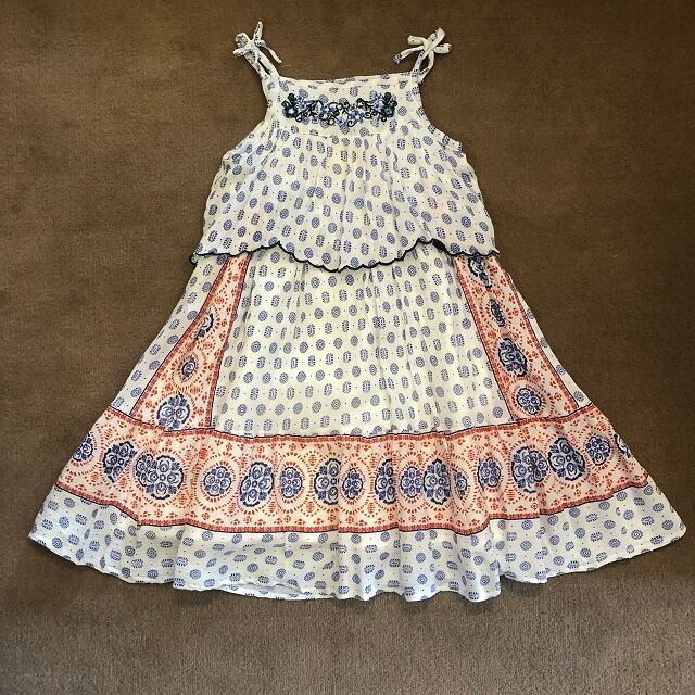 エスニック調の柄に胸元の刺繡がかわいいドレスになります。