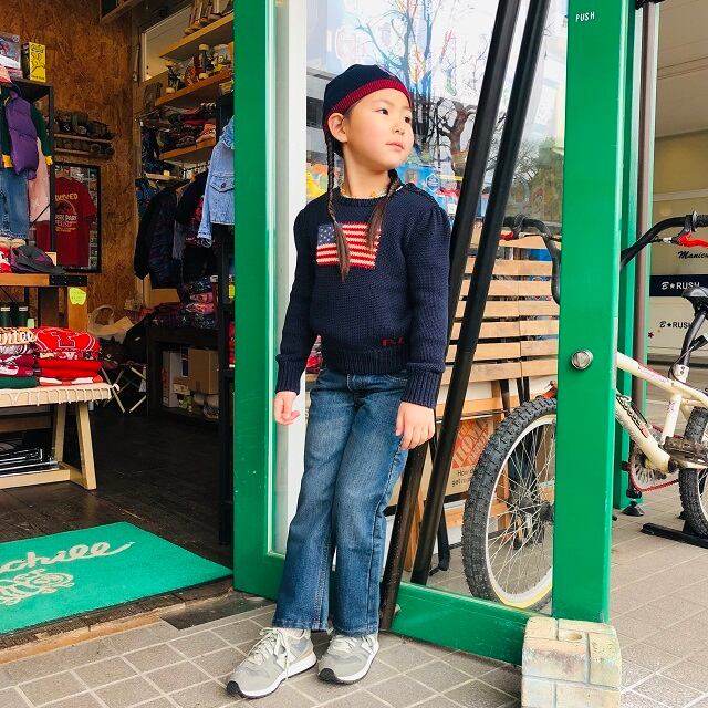 Levis kids 505になります。Levisならではのデザインはそのままにキッズの可愛らしさをプラス。裾をロールアップもオススメ、サスペンダーをしても可愛く履いて頂けます。ウエストはダブルアジャスター付きで調整可能です。
