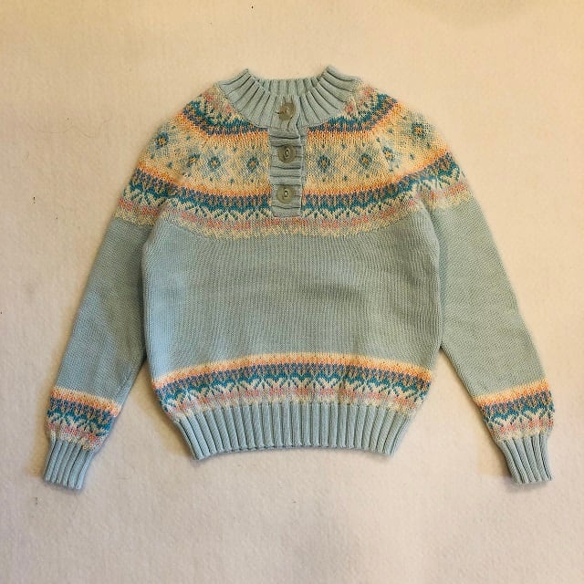 USED L.L.BEANノルディック柄コットンニットになります。柔らかいコットンを使用したニットのセーターになります。首元ボタン付きプラケットとなっております。