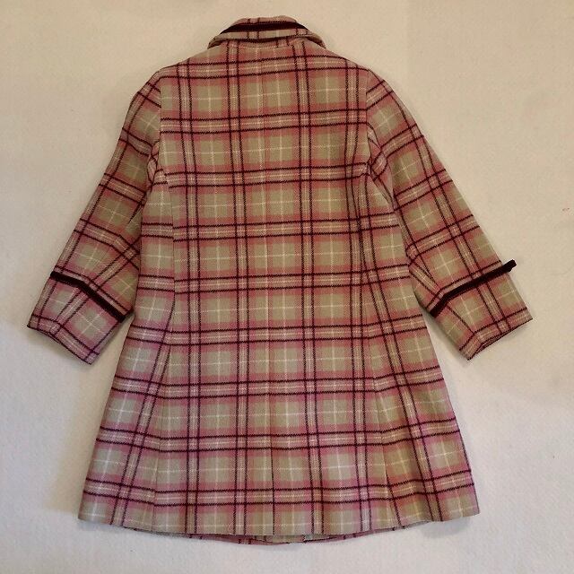 USED LAURA ASHLEYのレトロな雰囲気なコートになります。襟元と袖元とポケット部分のボルドー色のリボンがアクセントになっていて、とてもオシャレなコートになります。