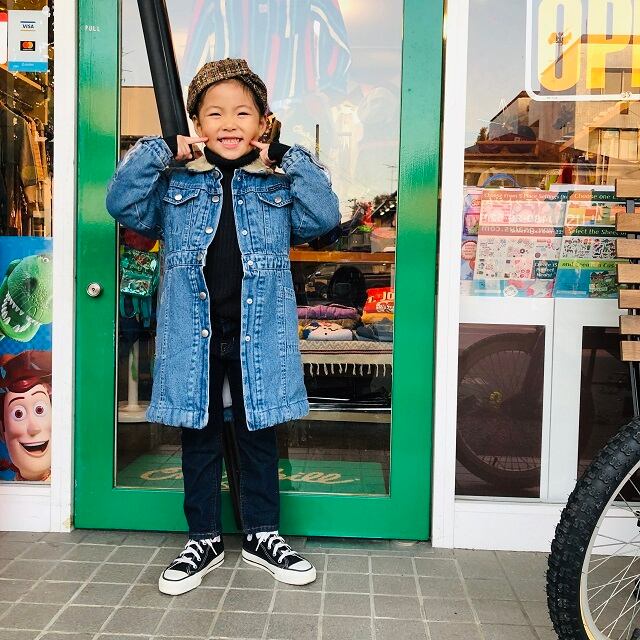 USEⅮDINGDONG中綿デニムジャケットになります。襟のボアがとてもかわいく長めのレングスでおしりまで暖かいジャケットになります。ボタンは全てスナップボタンになりますが袖口のボタンは外れない構造となっております。