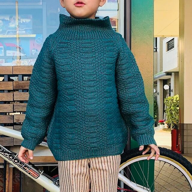Vintage Hand made 80sヴィンテージハンドメイドタートルネックニットになります。シーグリーンの色合いも良くしっかりと編み込まれています。タートルネックで首元まで暖かく着用いただけます。