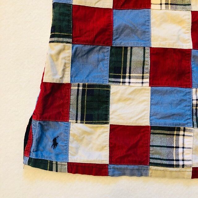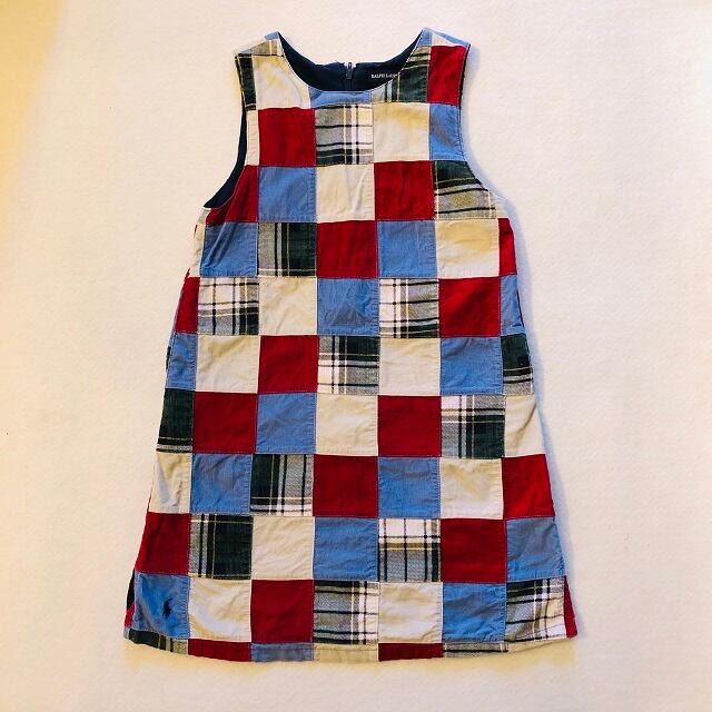 USED RALPH LAURENパッチワークドレスになります。パッチワークの色合いがとても可愛いくコーデユロイ素材で暖かみのあるノースリーブドレスになります。背中部のジップで大きく開きます。