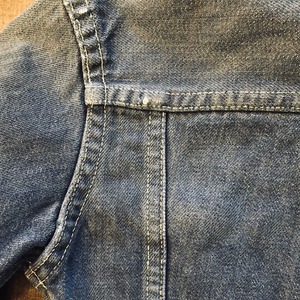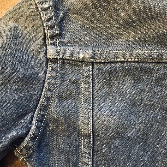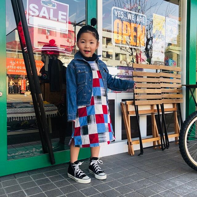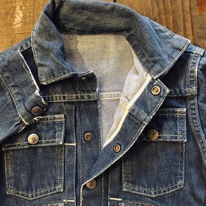 ここ最近あまり見かけなくなってきたデニムジャケットではないでしょうか。デザインも可愛いです。
