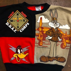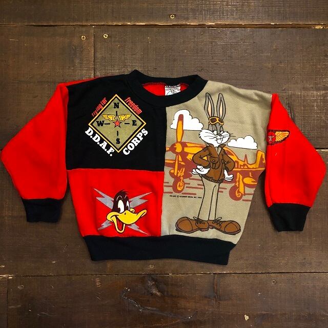 WARNER BROSでお馴染みのUSED LOONEY TUNESスエットになります。バックスバニーとダフィーダックがパッチワークでプリントされた可愛いスエットです。お子様に着せるのはもちろん観賞用としても、とっても可愛いです。