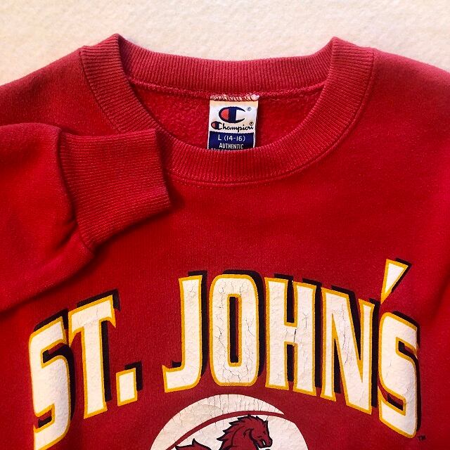 USED Champion ST.JOHNS スエット、USA製になります。サイズはyouthL14-16歳ですが、小柄な女性でしたら着用いただけるサイズ感となっております。実寸サイズをご確認下さい。