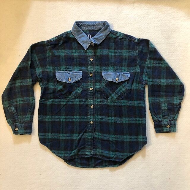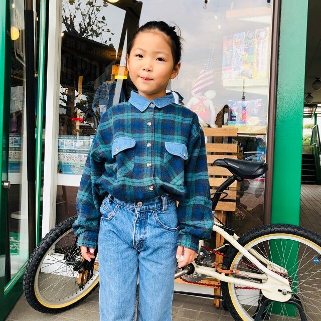 USED ATLAST KIDS ネルシャツになります。襟部分と胸ポケの蓋部分がデニム地になっていて、チェックの色合いも良い1枚となっております。