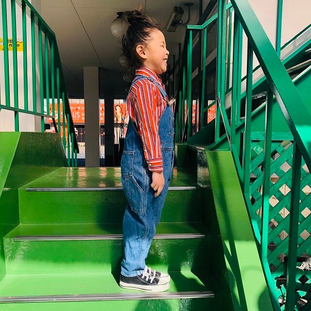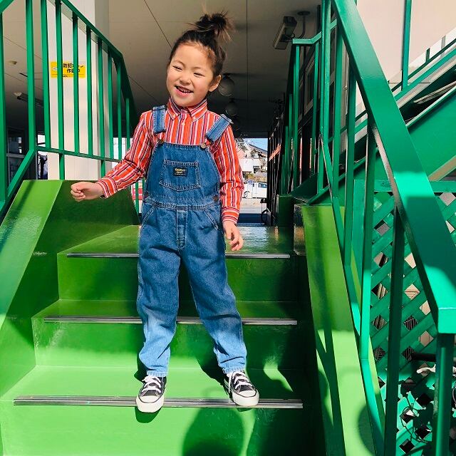 USED OSHKOSH オーバーオール になります。ペインターパンツの様な作りに、ももから足首にかけ細くなっていて、シルエットがとても可愛いです。