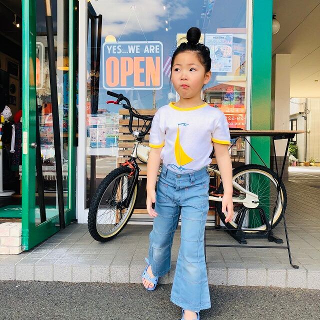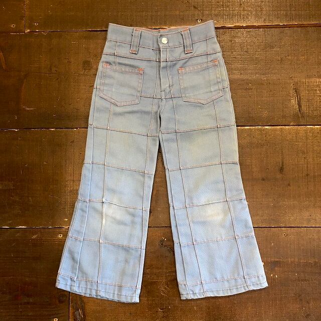 USED MONGOMERY WARDモンゴメリーワードのフレアーパンツになります。ライトオンスで全体がパッチワークになっており、前ポケットがかわいいパンツになります。
