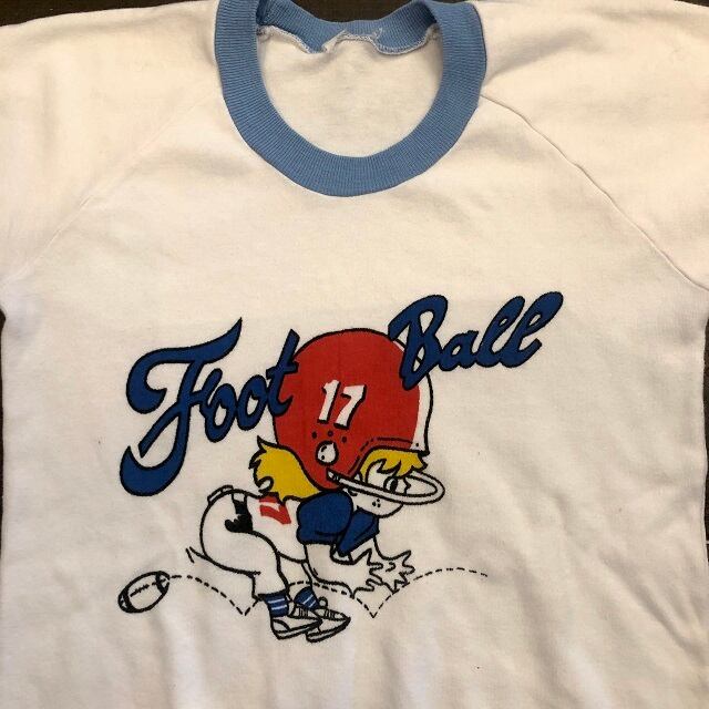 USEDラグラン・リンガーTシャツになります。FOOT BALLのプリントがレトロでかわいいTシャツになります。