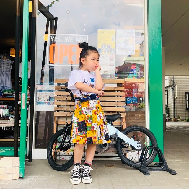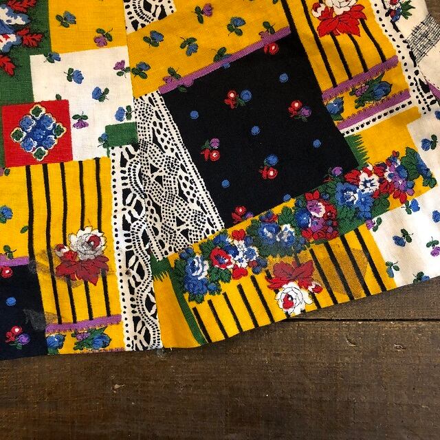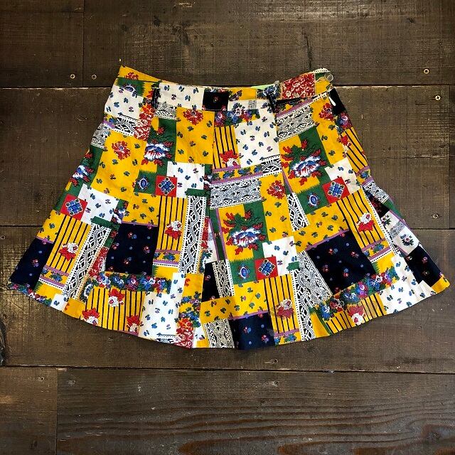 USED パッチワーク風プリント スカートになります。スカートの下部に少々のシール跡がございますので写真でご確認ください。