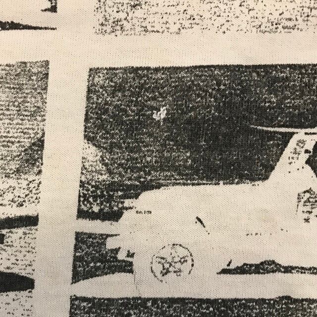 USED JEEP WRANGLER総柄Tシャツになります。 WRANGLERが全面にプリントされたカッコイイTシャツです。フロントお腹部にリペアー(5mm程度)がされています。画像でご確認ください。