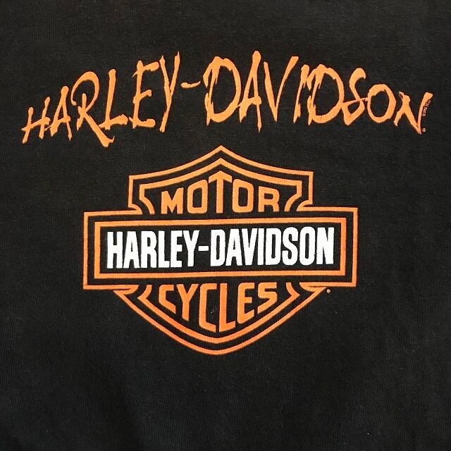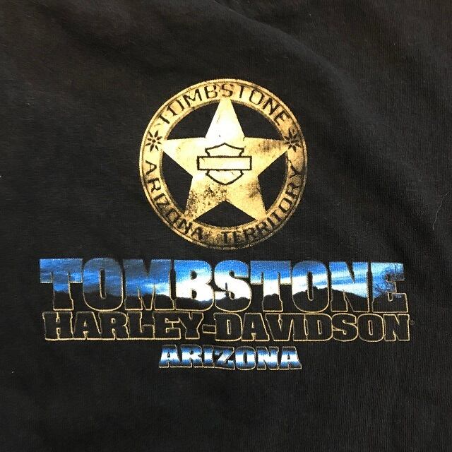 USED HARLEY DAVIDSON ARIZONA Tシャツ になります。ハーレーダビッドソンアリゾナのTシャツになります。ブラックのボディーにオレンジのプリントが良い感じです。サイズ表記不明となっておりますので実寸サイズをご確認ください。