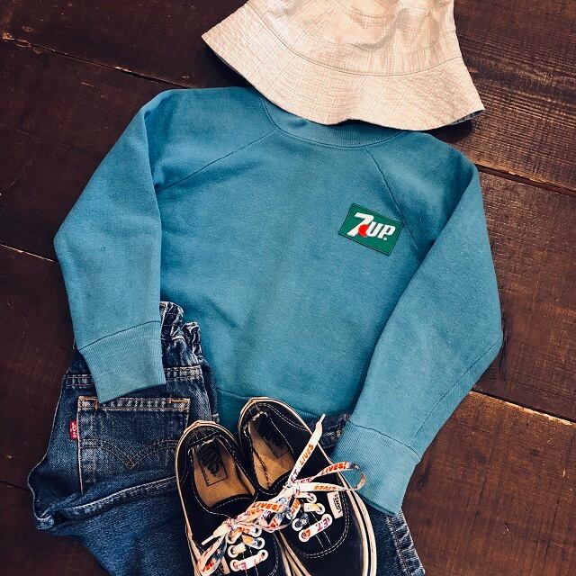 USED 70s~80s アメリカ古着 ワッペン付きスエットになります。胸元の7UPのワッペンがカワイイく、使用感、色あせ.、汚れ、ダメージ等は御座いますが、ヴィンテージ感のある良い雰囲気となっております。