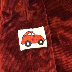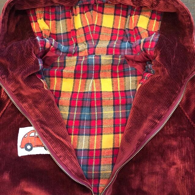 USEDコーデュロイジャケット になります。光沢感のあるコーデュロイ生地で、胸元と右腕の車のアップリケが可愛らしい1着になります。