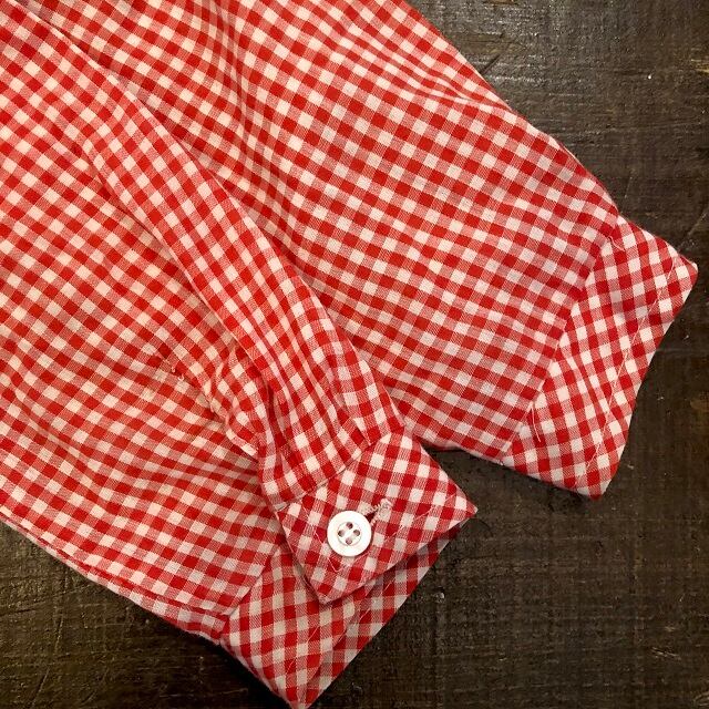 USED ヨーロッパ古着 ギンガムチェックノーカラーシャツになります。レトロな雰囲気がかわいいシャツになります。