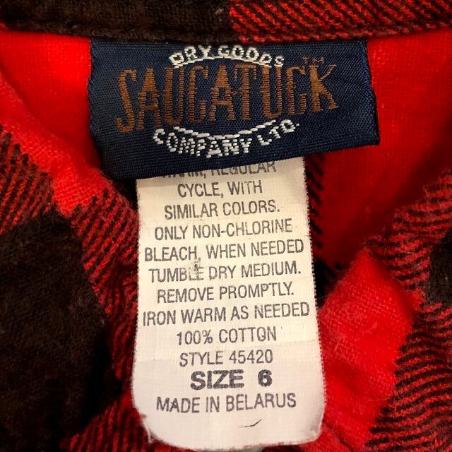 USED SAUCATUCK ボタンダウン バッファローチェック ネルシャツ 6T 6歳になります。合わせやすく着回しがきくネルシャツです。使用感は御座いますが問題なく着用して頂けます。