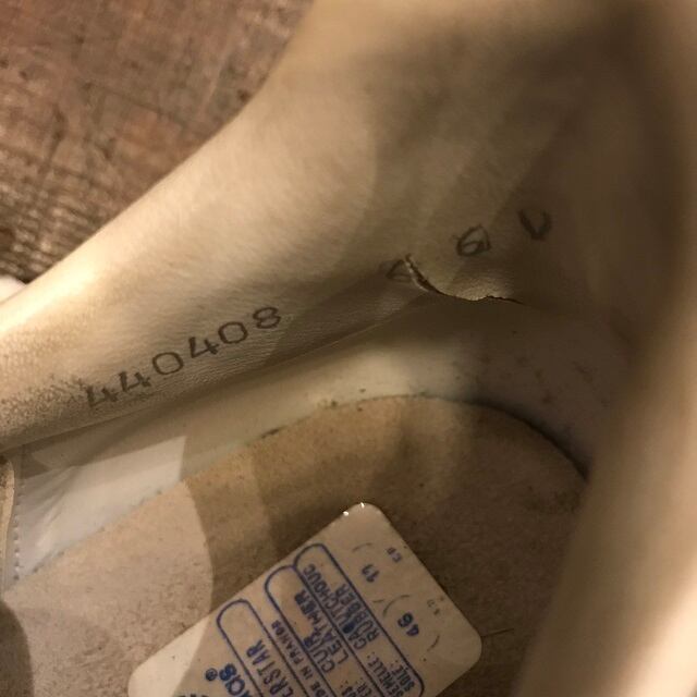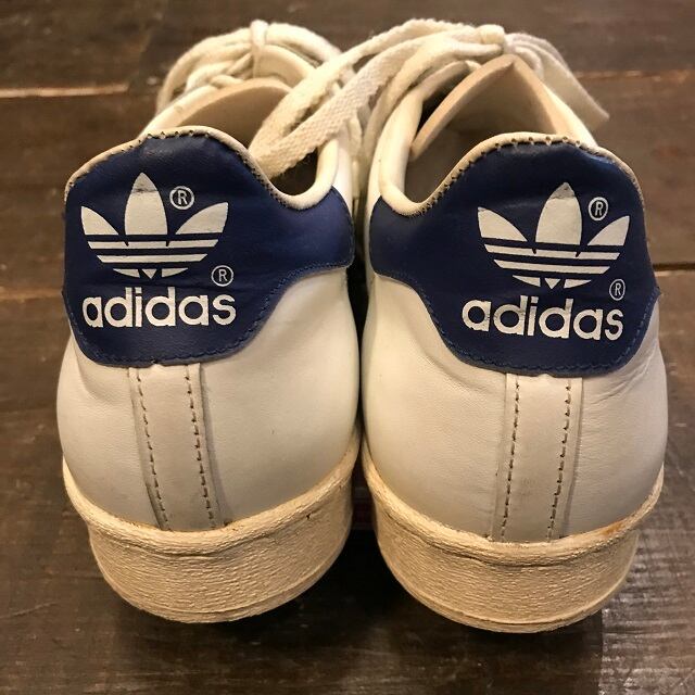 アッパーの状態も良く程よく黄ばんだソールが現行のsuperstarと違って凄くカッコいいです。vintage superstarは踵の内側が劣化でひび割れてしまう特徴があり本品も両踵にひび割れが御座いますので画像でご確認下さい。使用感は御座いますが踵内側以外、アッパー、ソール状態バッチリです。元箱が御座いませんので本体のみの発送です。