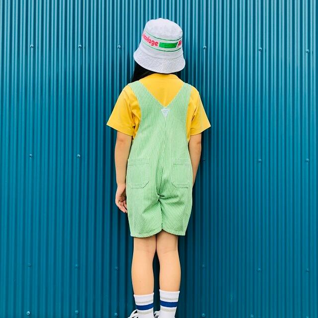 USED OSHKOSH ヒッコリーハーフオーバーオール 110㎝になります。