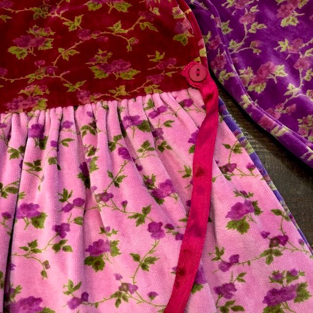 しっかりとした作りで肉厚なベロア生地、小花柄が可愛いいレトロなドレスです。