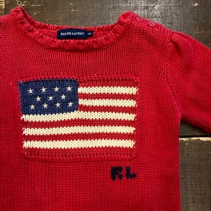 USED RALPH LAURENのニットになります。柔らかいコットンを使用したフラッグコットンニットになります。肩部パフスリーブ、プラケットとなっております。