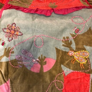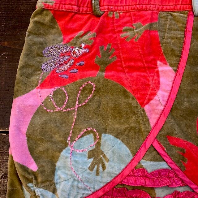 昆虫やお花などが、ビーズや刺繡で施されたオーバーオールスカートになります。