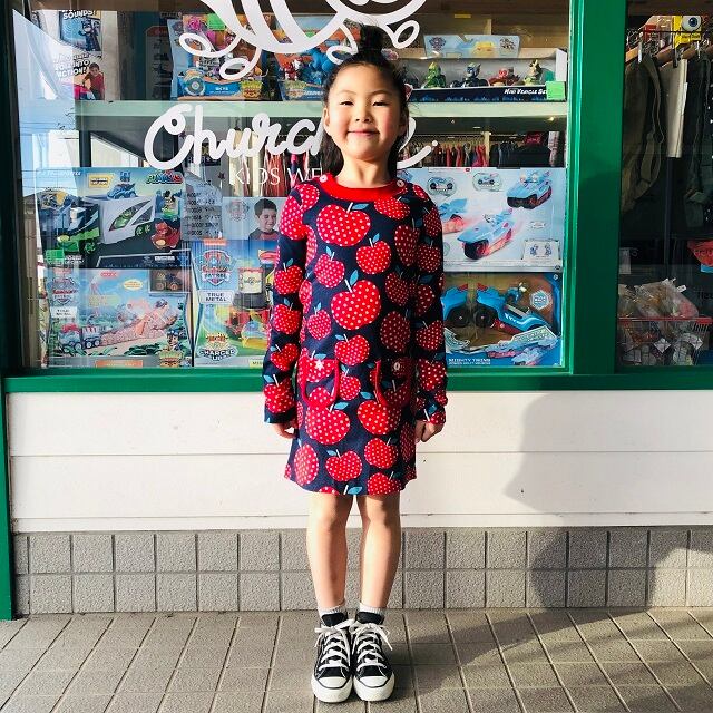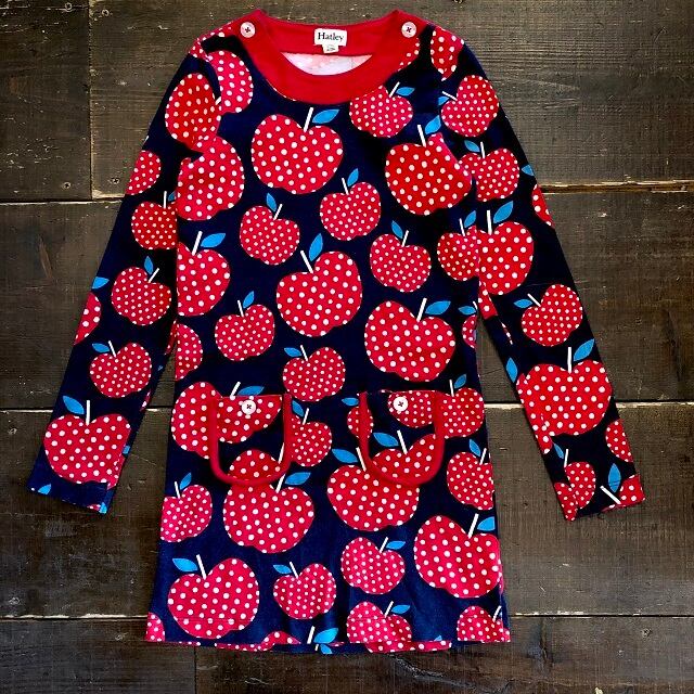 USED Hatley ドレス 8Y 8歳になります。アップル柄のタイトなワンピースになります。