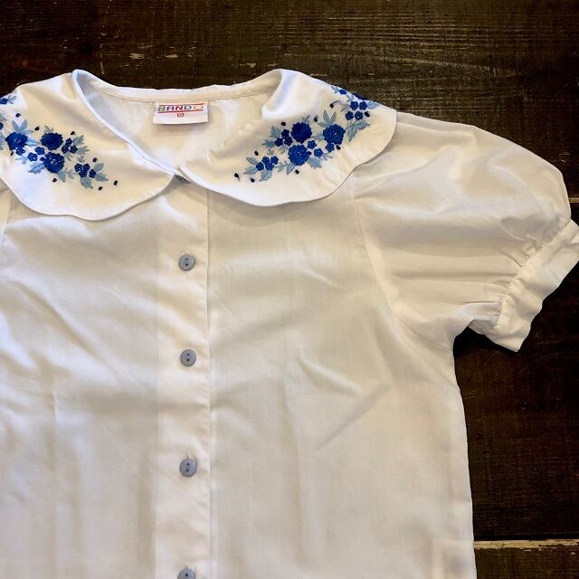 大ぶりの襟にお花の刺繡が入っており、可愛い1枚になります。