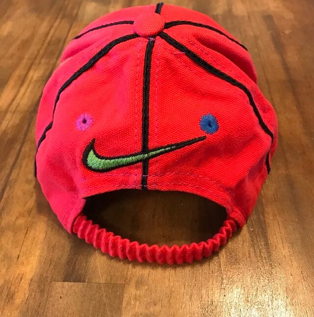 フロントにnikeのロゴ、バックにスウッシュの刺繡が入り通気穴はカラフルな仕様に