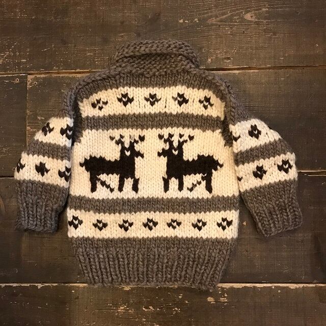 USED カナダ製 KIDS カウチンニット鹿柄 ブランド名、サイズ不明になります。