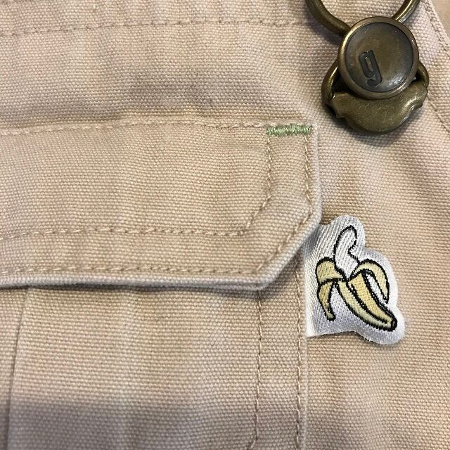 しっかりしたコットン地にポケットが7か所、胸のポケットの左横に付いた