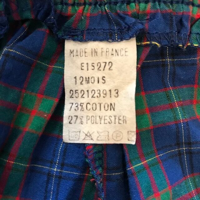 USED FRANCE製 ストラップ付チェックバルーンパンツ 12m 12ヶ月になります。